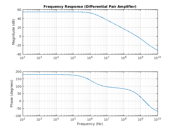 Эта модель может использоваться, чтобы получить частотную характеристику системы. Опция блока Solver Configuration «Начать симуляцию из устойчивого состояния» включена, чтобы убедиться, что модель линеаризирована относительно своей номинальной рабочей точки. Для линеаризации модели может использоваться командная линмод MATLAB ®. Если у вас есть Design™ Simulink ® Control, откройте ee_amp_diff_pair модели. На вкладке Apps, в разделе Control Systems, нажмите Model Linearizer. В модуле Model Linearizer, на вкладке Linear Analysis, в разделе Linearize, нажмите Bode. Точки линеаризации определяются щелчком правой кнопкой мыши на линии Simulink и выбором «Точки линеаризации». Если вы посмотрите на блок Sensor, вы увидите выходной символ линеаризации на выходе блока PS-Simulink. Точно так же под Исходным блоком вы увидите символ входной точки линеаризации на выходе блока Sine Wave.
