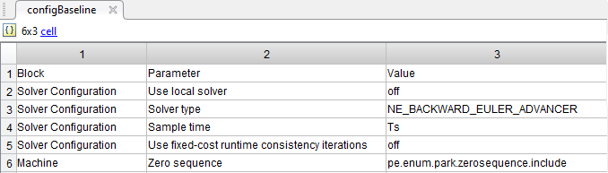 Если вы смените локальный решатель на решатель Partitioning и симулируете модель сейчас, возникает ошибка из-за членов нулевой последовательности. Используйте ee_updateSolver функция, чтобы сконфигурировать модель для симуляции с решателем Partitioning без генерации ошибки. Сохраните настройки строения, сравните настройки с настройками базовой линии и запустите временную симуляцию.