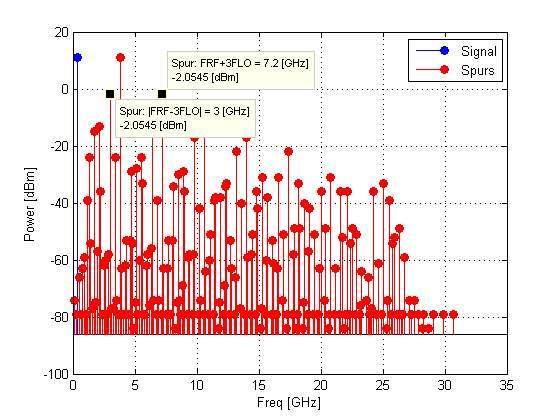 Mixer = rfckt.mixer('FLO', 1.7e9); % Flo = 1.7GHz read(Mixer,'samplespur1.s2d'); disp(Mixer)