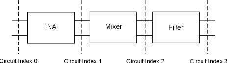 FirstCkt = rfckt.amplifier('NetworkData', ... rfdata.network('Type','S','Freq',2.1e9,'Data',[0,0;10,0]), ... 'NoiseData',0,'NonlinearData',Inf); % 20dB LNA SecondCkt = copy(Mixer); % Mixer with IMT table ThirdCkt = rfckt.lcbandpasstee('L',[97.21 3.66 97.21]*1.0e-9, ... 'C',[1.63 43.25 1.63]*1.0e-12); % LC Bandpass filter CascadedCkt = rfckt.cascade('Ckts',{FirstCkt,SecondCkt,ThirdCkt});
