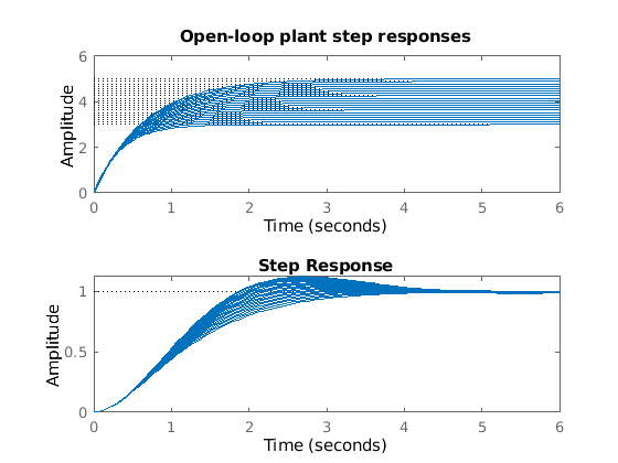 B = gridureal(A,N) подстановки N равномерно разнесенные выборки неопределенных реальных параметров в A. Выборки выбираются так, чтобы срезать «по диагонали» кубик пространства неопределенности действительного параметра. Область массива B имеет размер, равный [size(A) N]. Например, предположим A имеет 3 неопределенных реальных параметра, скажем X, Y и Z. Предположим (x1, x2 , , and xN) обозначают N равномерные выборки X по своей области значений. Аналогично для Y и Z. Затем выборка A в точках (x1, y1, z1), (x2, y2, z2), и (xN, yN, zN) для получения результата B.