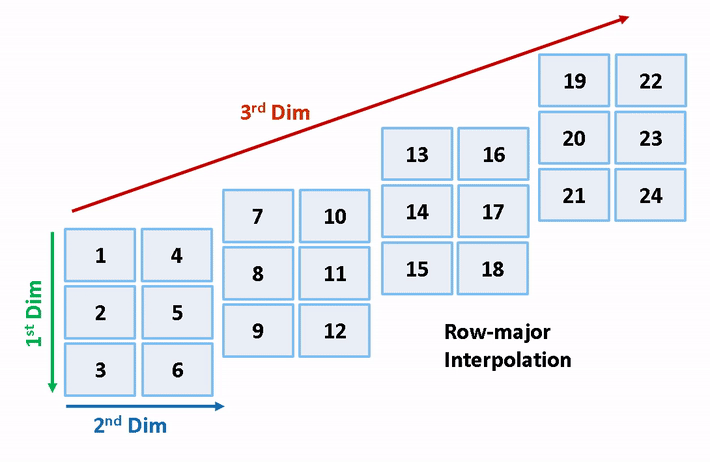 В сгенерированном коде данные таблицы находятся в основном порядке строк, и алгоритм интерполяции оптимизирован для размещения массива основных строк. Алгоритм основной строки работает с данными таблицы, которая смежна в памяти. Это приводит к более быстрому доступу к кэшу, делая эти алгоритмы удобными для кэша.
