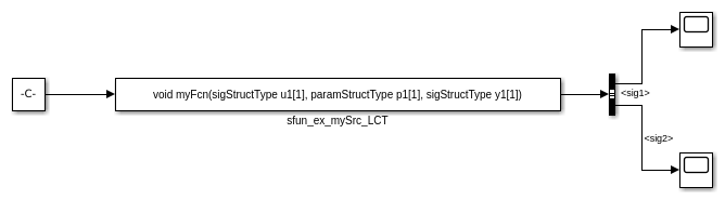 void myFcn(sigStructType *in, paramStructType *params, sigStructType *out);