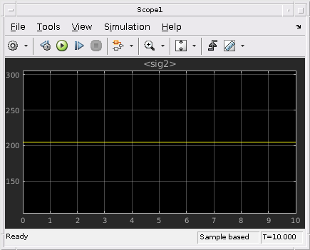 Запустите симуляцию. Блок C-MEX S-Function возвращает значение своего входа с плавающей точкой, умноженное на два. Он ведет себя как функция C doubleIt.