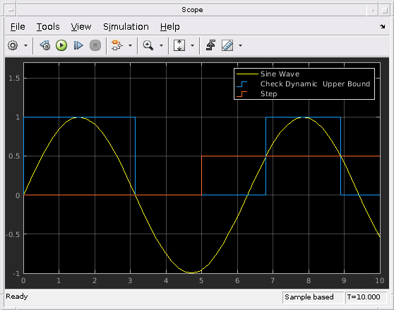 The Check Dynamic Upper Bound block checks if the a reference signal,