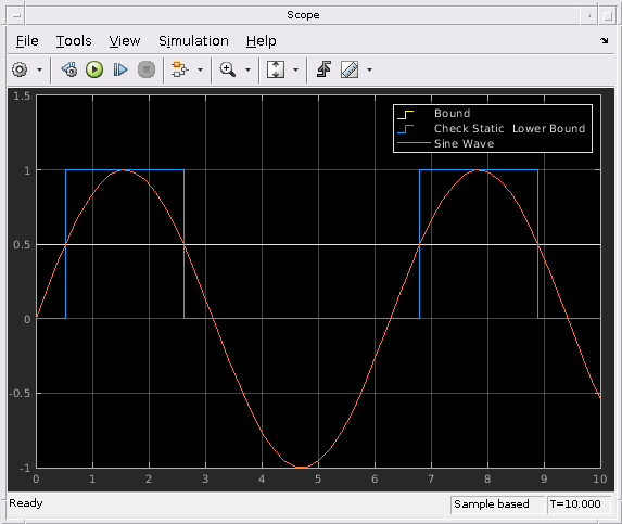 The input signal and bound can be scalars, vectors, or matrices. The input and the bound must be the same data type. The block compares the value of the input to the bound differently depending on the signal.