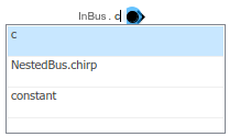 При вставке In Bus Element блока метка блока заполняется значениями по умолчанию. Метка состоит из двух интерактивных текстовых полей: имя порта и элемент шины. Чтобы изменить имя порта, связанного с блоком, измените первое текстовое поле в метке, нажав на него.