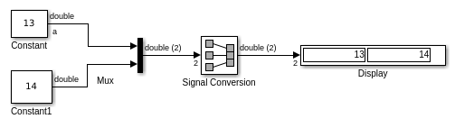 Блок Signal Conversion преобразует сигнал от одного типа к другому. Чтобы выбрать тип преобразования для выполнения, используйте параметр Output или один из следующих предварительно сконфигурированных блоков Signal Conversion: