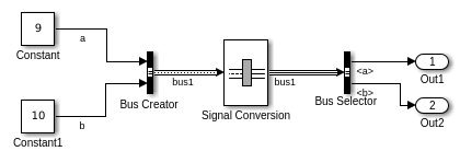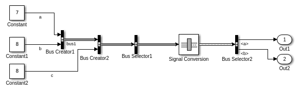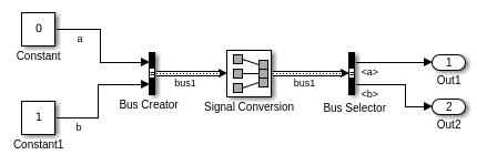 Если вы задаете объект шины для блока Signal Conversion, но не для его восходящего блока Bus Creator, то используйте объект шины, который соответствует иерархии шины, которая в восходящем направлении Bus Creator выходов блока.