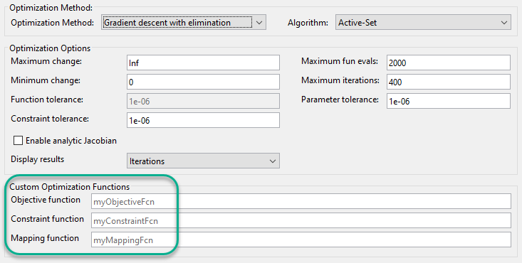 opspec.CustomConstrFcn = @myConstraintsMap; opspec.CustomObjFcn = @myObjectiveMap;