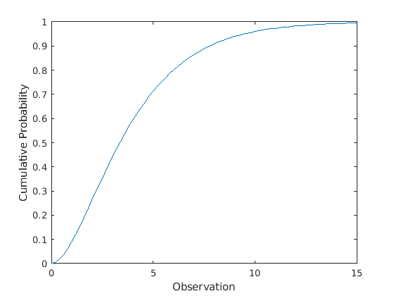figure; plot(x,y) xlabel('Observation') ylabel('Cumulative Probability')