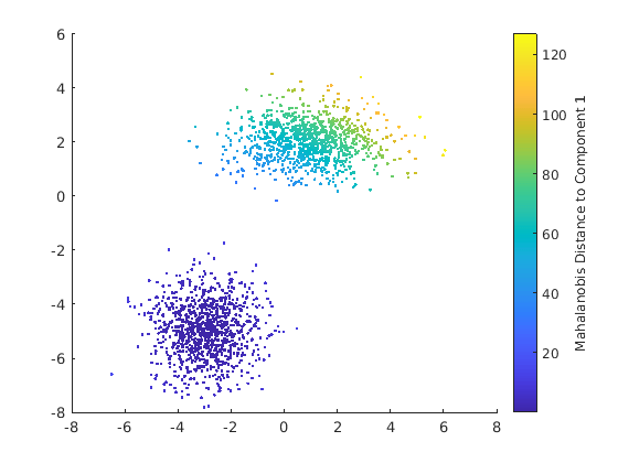 mahal возвращает квадратное расстояние Махаланобиса d2 из наблюдения в X к компоненту смеси в gm.