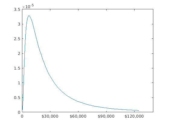 pd = makedist('Lognormal','mu',log(20000),'sigma',1)