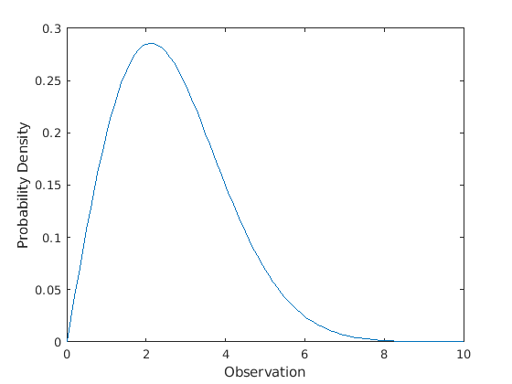 figure; plot(x,y) xlabel('Observation') ylabel('Probability Density')