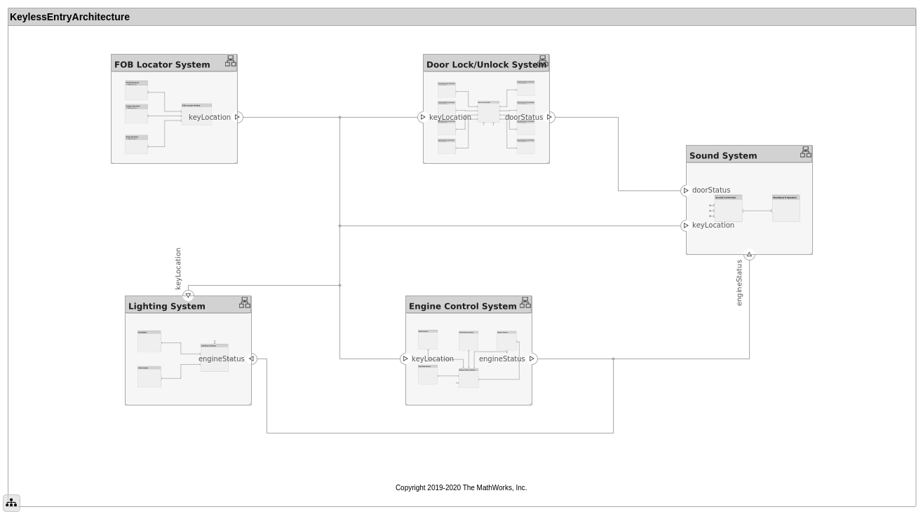 В этом примере показано, как настроить архитектуру для системы бесключевого доступа для транспортного средства. Вы также узнаете, как создать различные представления архитектуры для различных проблем заинтересованных сторон.