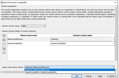 Подсистема Image Buffer содержит две опции моделирования подключения к внешней памяти. Это вариант подсистемы, в которой можно выбрать между подсистемой BehavioralMemory и Интерфейсом Буфера Системы Координат Модели (Пакет поддержки Vision HDL Toolbox для Xilinx Zynq-Based Hardware).