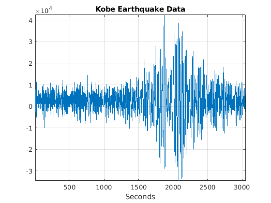 load kobe plot(kobe) grid on xlabel('Seconds') title('Kobe Earthquake Data') axis tight