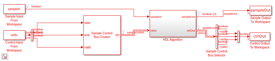 Этот блок использует интерфейс потоковой выборки с шиной для связанных сигналов управления. Этот интерфейс позволяет блоку работать независимо от формата кадра и легко соединяться с другими блоками Toolbox™ Wireless HDL. Блок принимает и возвращает значение, представляющее одну выборку, и шину, содержащую три сигнала управления. Эти сигналы указывают валидность каждой выборки и контуров системы координат. Чтобы преобразовать матрицу в поток сэмплирования и эти сигналы управления, используйте блок Frame To Samples или whdlFramesToSamples функция. Полное описание интерфейса см. в разделе Потоковый пример интерфейса.