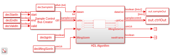 Блок поддерживает скалярные и векторные входы. Блок обеспечивает архитектуру, подходящую для генерации HDL-кода и аппаратного развертывания. Для получения дополнительной информации см. «Алгоритмы».