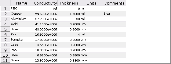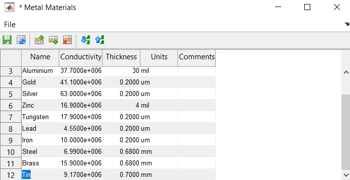 Можно изменить запись путем определения желаемого имени, проводимости и толщины материала, чтобы настроить.