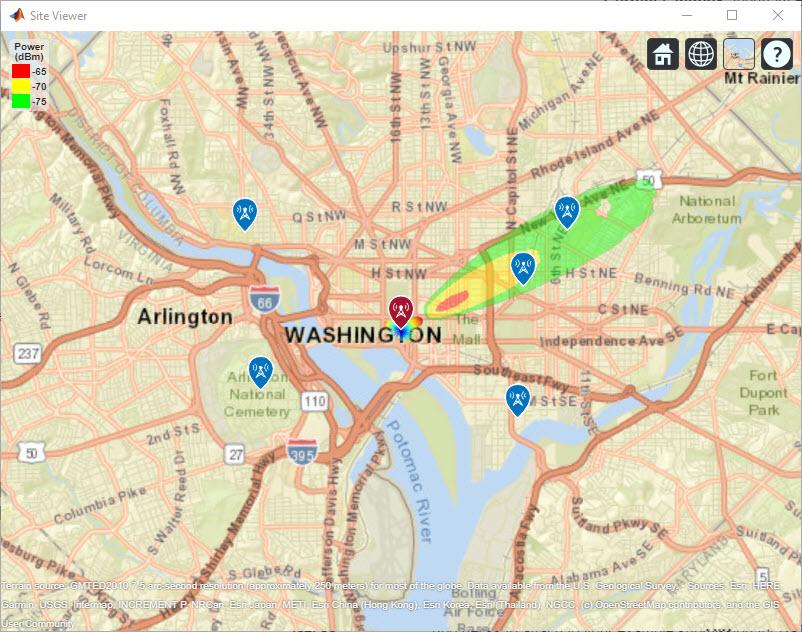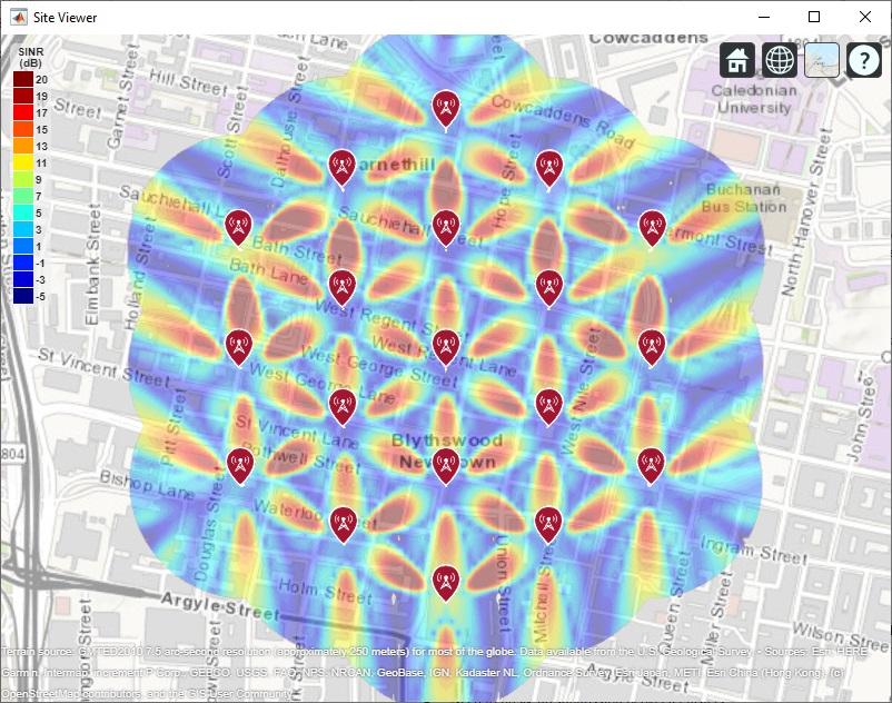 Визуализируйте карты покрытия, карты SINR и пути к распространению в наружных и внутренних средах.