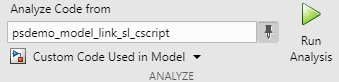 Чтобы запустить анализ Polyspace пользовательского кода С в блоке C Function, выберите Custom Code Used in Model из выпадающего списка в разделе Analyze.