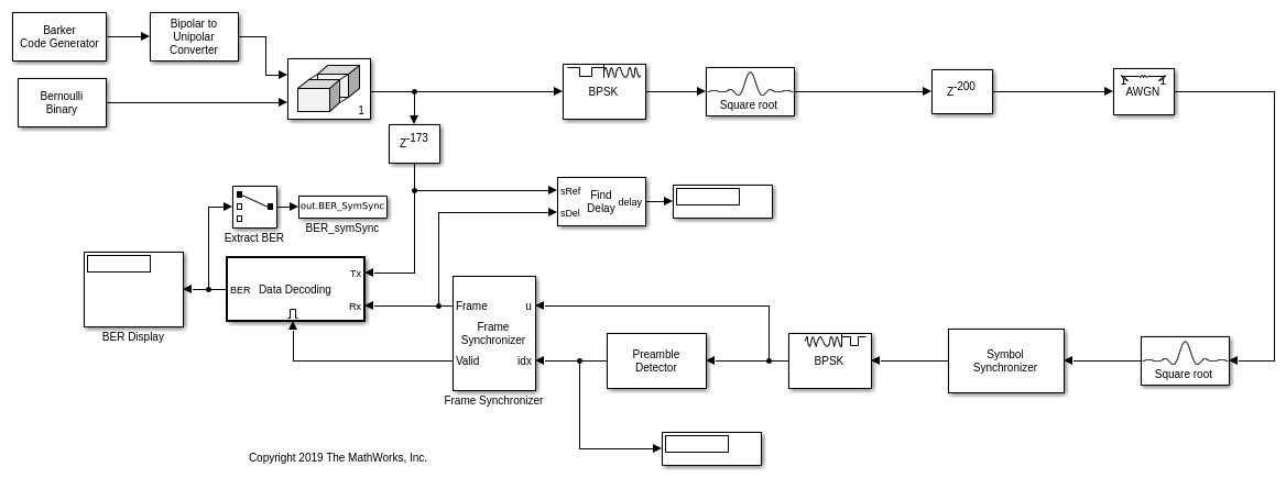 В MATLAB®, основополосное представление сигнала BPSK