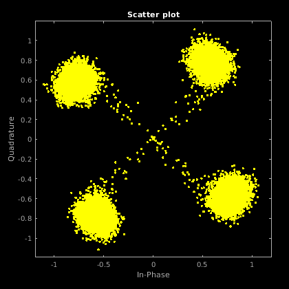 data = randi([0 M-1],numSymbols,1); tx = pskmod(data,M,pi/4); % OQPSK delayedSym = systemDelay(filter(mpChan,1,tx)); rx = awgn(delayedSym,snr,'measured');