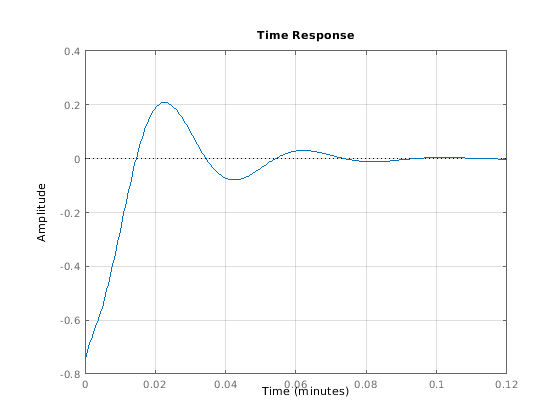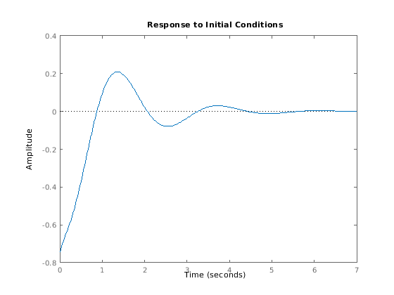 симулирует ответ начальных условий от h = initialplot(___,tFinal)t = 0 к итоговому времени t = tFinal. Задайте tFinal в модулях системного времени, заданных в TimeUnit свойство sys. Для систем дискретного времени с незаданным шагом расчета (Ts = -1), initialplot интерпретирует tFinal как количество интервалов выборки, чтобы симулировать.