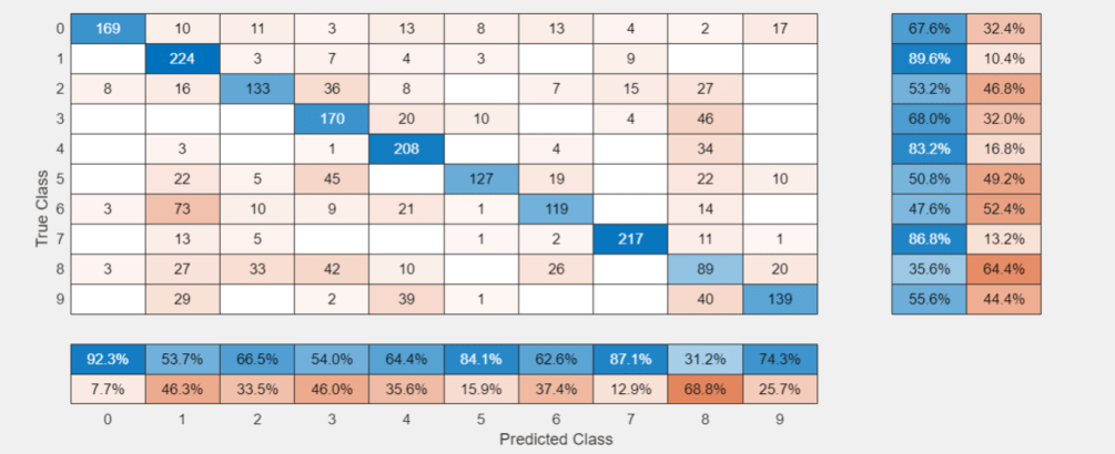 Нажмите Confusion Matrix, чтобы отобразить матрицу беспорядка для данных о валидации в каждом завершенном испытании.