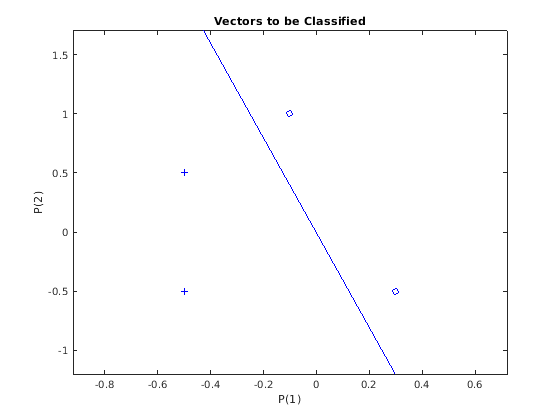 Каждый из этих четырех вектор-столбцов в X задает, двухэлементные входные векторы и вектор-строка T задают целевые категории вектора. Мы можем построить эти векторы с PLOTPV.