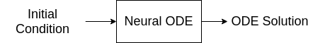 Нейронная сеть этого примера берет в качестве входа начальное условие и вычисляет решение для ОДУ через изученную нейронную модель ODE.