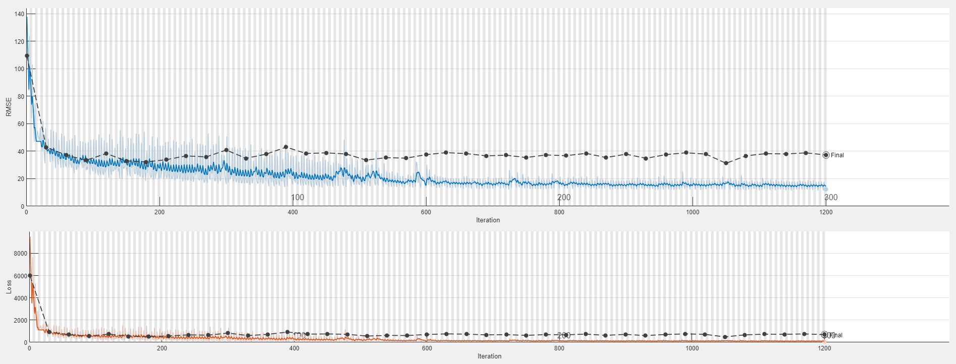 options = trainingOptions("adam", ... ExecutionEnvironment="auto", ... MaxEpochs=maxEpochs, ... MiniBatchSize=miniBatchSize, ... ValidationData={XValidation,YValidation}, ... ValidationFrequency=30, ... InitialLearnRate=params.InitialLearnRate, ... LearnRateDropFactor=0.2, ... LearnRateDropPeriod=15, ... GradientThreshold=1, ... Shuffle="never", ... Verbose=false);