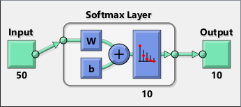 Обучите softmax слой классифицировать 50-мерные характеристические векторы. В отличие от автоэнкодеров, вы обучаетесь, softmax слой в контролируемом использовании вида помечает для обучающих данных.