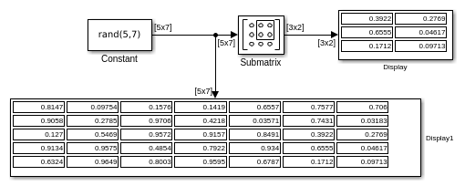 Блок Submatrix извлекает непрерывную субматрицу, y, от M-by-N входная матрица u. Для получения дополнительной информации о выборе строк и столбцов, чтобы извлечь, см. Опции Спецификации Области значений.