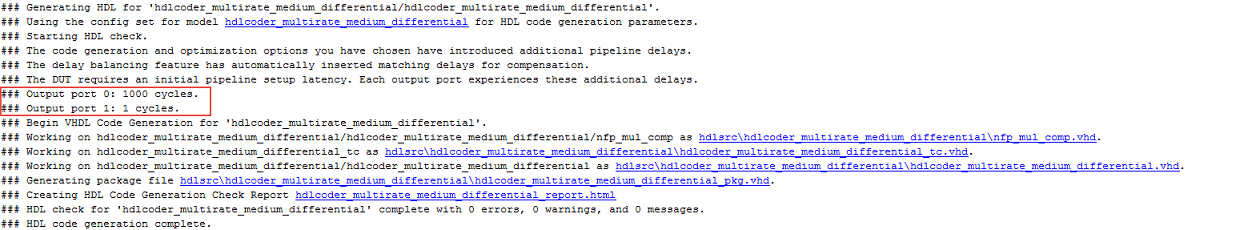 Сгенерируйте HDL-код для hdlcoder_multirate_medium_differential Подсистема и проверка выходной журнал.