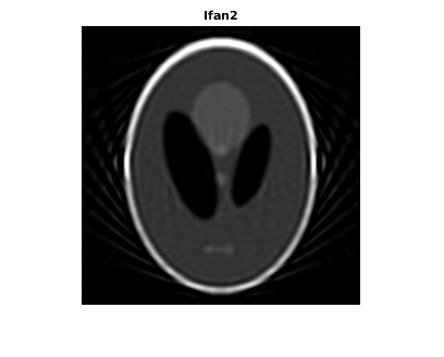 output_size = max(size(P)); Ifan1 = ifanbeam(F1,D, ... 'FanSensorSpacing',dsensor1,'OutputSize',output_size); figure, imshow(Ifan1) title('Ifan1')