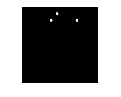 thresh = 60; % Use a threshold that's a little less than max. D = C > thresh; se = strel('disk',5); E = imdilate(D,se); figure imshow(E) % Display pixels with values over the threshold.
