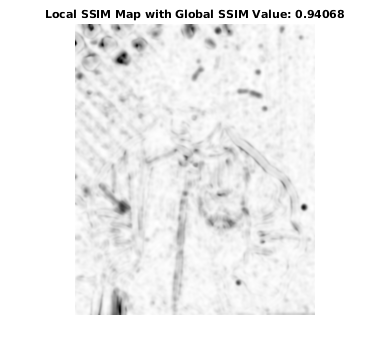 Когда вы задаете значение нецелого числа для "Exponents", ssim функция предотвращает комплекс, оцененный выходные параметры путем зажима промежуточной яркости, контраста и структурных терминов к области значений [0, inf].