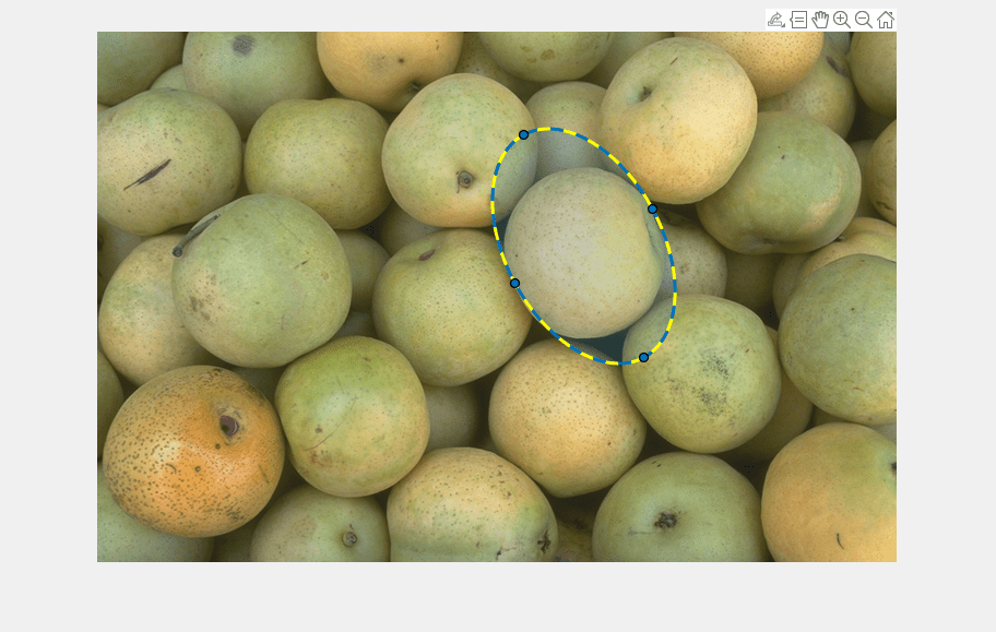 Чертите ROI на изображении при помощи draw функция. Перетащите курсор по изображению, чтобы создать эллиптическую форму. Отображенный ROI имеет цвет поверхности и цвет дорожки, который вы задали, когда вы создали ROI.