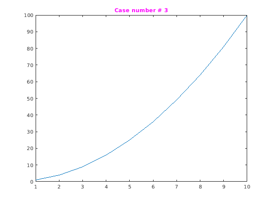 figure plot((1:10).^2) title('Case number # 3','Color', 'm')