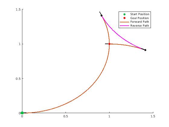 Сегмент пути Тростников-Shepp поддерживает и прямое и обратное движение.