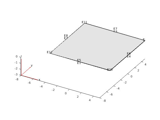 О смещении, скорости и ускорении сообщают для узлов треугольной или четырехгранной mesh, сгенерированной generateMesh. Смещение, скорость и ускоряющие значения в узлах появляются как FEStruct объекты в Displacement, Velocity, и Acceleration свойства. Свойства этих объектов содержат компоненты смещения, скорости и ускорения в узловых местоположениях.