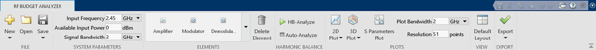 Запустите эту команду в командном окне, чтобы открыть систему в приложении RF Budget Analyzer.