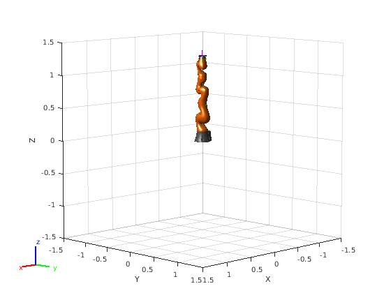 Для данной модели дерева твердого тела можно также использовать модель робота, чтобы вычислить углы поворота шарнира для желаемых положений исполнительного элемента конца с помощью алгоритмов инверсной кинематики робототехники. Задайте свою модель дерева твердого тела при использовании inverseKinematics или generalizedInverseKinematics.