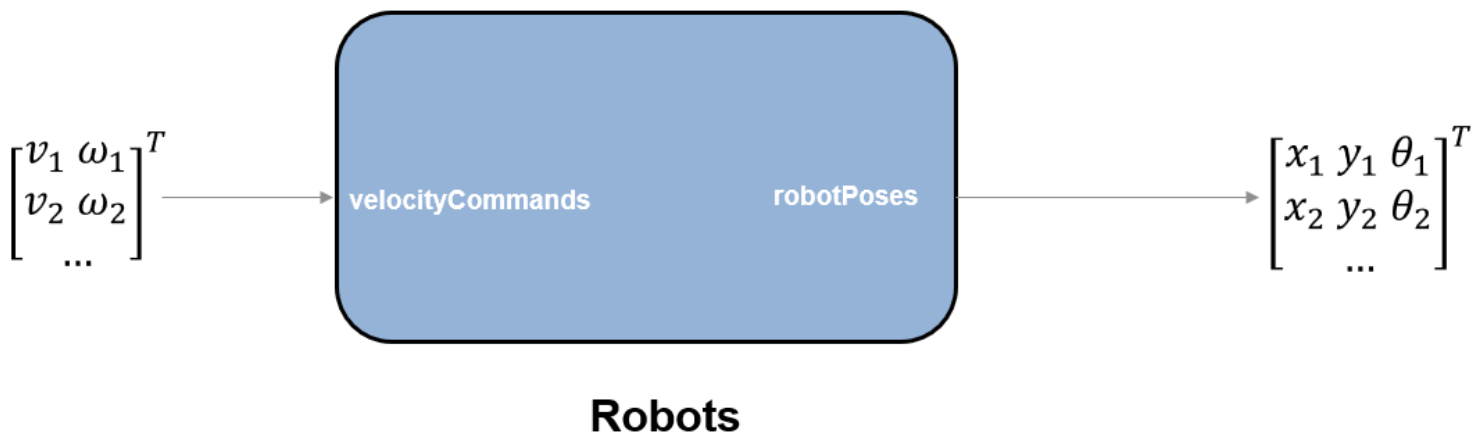 Дополнительные Дифференциальные Кинематические блоки Model также требуются, чтобы совпадать с количеством роботов. exampleHelperReplacePlantSubsystem добавляют они путем обновления numRobots.