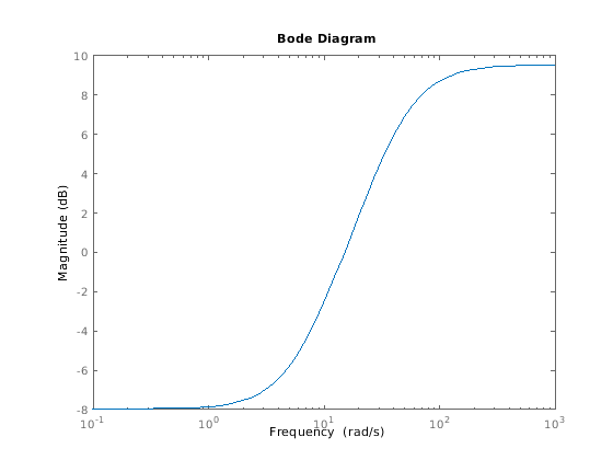 Создайте неопределенную систему, включающую номинальную модель с зависимой частотой суммой неопределенности. Можно смоделировать такую неопределенность с помощью ultidyn и функция взвешивания, которая представляет профиль частоты неопределенности. Предположим в низкой частоте ниже 3 рад/с, модель может варьироваться до 40% от своей номинальной стоимости. Приблизительно 3 рад/с, изменение процента начинает увеличиваться. Неопределенность пересекает 100% на уровне 15 рад/с и достигает 2 000% на уровне приблизительно 1 000 рад/с. Создайте передаточную функцию с соответствующим профилем частоты, Wunc, использовать в качестве функции взвешивания, которая модулирует сумму неопределенности с частотой.