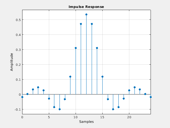 возвращает коэффициенты, b = rcosdesign(beta,span,sps)b, это соответствует КИХ-фильтру квадратного корня приподнятого косинуса с фактором спада, заданным beta. Фильтр является усеченным к span символы и каждый символьный период содержат sps выборки. Порядок фильтра, sps*span, должен быть четным. Энергия фильтра равняется 1.