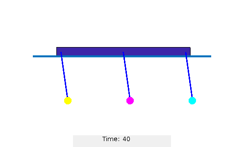 Симуляция этой системы показывает интересное явление: Синхронизация. Это показывает, что все три метронома с различным углом начальной фазы в конечном счете становятся синхронизируемыми друг с другом. Рисунок 3 показывает результаты симуляции. Основной причиной для синхронизации является движущаяся основа, которая соединяет все эти метрономы. Это физическое соединение может наблюдаться от динамического уравнения каждого метронома.