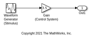 Чтобы быстро определить ответ системы к различным типам входных параметров, можно варьироваться выходной сигнал блока Waveform Generator, в то время как симуляция происходит.